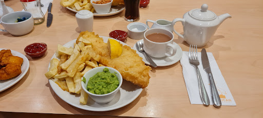 Visited the takeaway (it also has a restaurant in the same building) on a recent trip to the area. My visit coincided with it being unseasonably cold and drizzly, so their "make you order outside and wait there" way of doing takeaway orders was not appreciated when you could safely have queued for the takeaway in my view. This ordering method also meant that you couldn't see the food you were ordering, and gauge portion sizes by seeing the orders being prepared. Unfortunately their portion sizes are rather small, even when you order large, and had I been allowed inside the shop to order I would have worked that out and ordered more chips. Sadly, as orders are brought out by the staff already in a bag etc, we didn't know this until we got home and realised that there wasn't enough to go round, so very disappointed and in my view not value for money. However, the food we did have was very nice, and we all agreed the fish and the batter was of good quality and cooked just right. Sadly I will not visit again when in the area, and instead will go to Sonia's in...