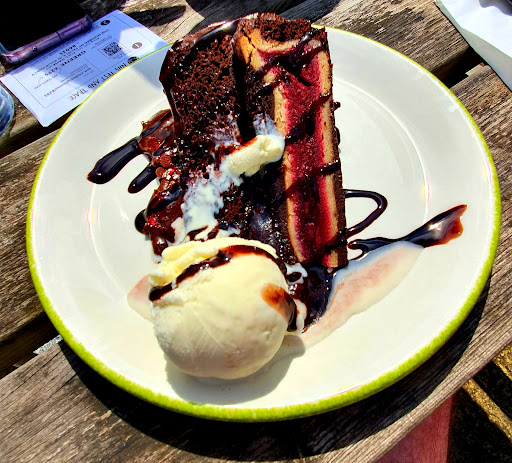 Read moreWent for lunch, with my friend. We was greeted with a lovely smiling face, the gent showed us to our table. I went to the bar to order drinks and food, I ordered hot chocolate for my friends, as it was a very cold day, I had a cup of tea. As I am gluten and dairy intolerant. Darren offered me oat milk for my tea, so glad of dairy free options. For lunch My friend ordered steak pie, mashed potatoes and mushy peas. I ordered 10oz rump steak, salad and a few chips separately. The lovely waitress brought our drinks over, my friend was impressed as she had whipped cream over her hot chocolate. My tea with oat milk. Was a very good start to the afternoon. Darren, brought our lunches over to our table. On presentation, my steak looked delishes, with little button mushroom, star shaped grill tomatoes and a lovely salad with dressing separately. My steak was tender and patterned from the griddle, full of juice. My friends steak pie, was deep, full of tender steak, with the right amount of gravy inside. Her pie came with mashed potatoes and mushy peas, gravy came separately in a jug. The presentation was spot on. As a retired chef, I always think, Quality, Quantity, and Presentation, makes all the difference. One I think of, very important, to customers. With my meal today, I would like to say this meal had all of these. Quality, Quantity and Presentation. The Staff caring, happy and helpful. My friend had millionaire brownie and ice cream. I wasn't going to have a dessert, as I didn't see any thing with out gluten or dairy. The waitress told me they did have fresh strawberrys and peach compote, and vegan ice cream I decline the icecream, but it was a lovely gesture the strawberrys and peach compote was light and so refreshing after steak, plus well presented. and a lovely alternative to dairy and gluten sponges, cakes and crumbles. Which I can't have. I would like to thank Darren and his team working today, for a lovely meal, the guy who greeted us the lovely waitress. Darren and the chef. You all made us feel so welcome, you couldn't do enough for us. You made sure we had a lovely afternoon. Thank...