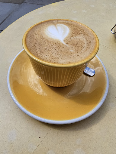 Came here for a coffee and a toastie on a sunny day so we were able to sit outside. Indoors was decorated really nicely, this cafe is a beautiful calm space. Outdoors was perfect for people watching on the Hitchin high street. All of the crockery is yellow- they have a nice yellow theme running throughout which is pleasing to the eye. The food all looked great. I really enjoyed my kimchi and cheese tkastie and a cortado. Service was good, never felt rushed and they brought everything in good time and it was attentive service. Staff just didn't seem massively happy, it would have been nice to have been greeted with a smile is the only thing I'd say is missing from this place.