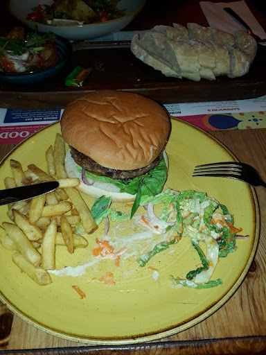 Cons: Massive queue on arrival as only 2 tills and same staff make the drinks as take the orders. There were other staff available but avoided all eye contact with customers and left the servers to flounder. Just needs another till and staff to support drinks orders, even taking diners' drinks to the table to release the pressure. I saw 3 groups of 4 leave the restaurant as the queue was too slow which is lost revenue on the night and ongoing as they will go elsewhere and tell their friends etc. (Just look across the pavement and see how Nandos get the ordering right) staff were not well trained struggling with requests and clearly under pressure tables badly laid out for an evening food service. The massive queue impacts the space available for efficient table layout to maximise covers. The table sizes do not lend well to a typical evening flow of diners so groups are cramped onto unsuitable tables use of recycled and funky furniture looks good, but it must be practical - the current ones struggle to make for a comfortable relaxed meal (fine for ad-hoc coffee, snacks during the day). Our first table was completely unsuitable with no room for four so we had to wait to pounce on another bigger one. However, that table had chairs too big to fit and so you have to sit straddling the table leg and elbows banging your fellow guests. no visible management, staff looked lost. food took a long time to arrive food didn't arrive at the same time, so one member of the party had finished theirs before I had received mine. pudding (sticky toffee) was over...