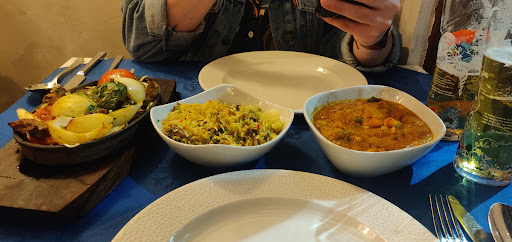 Myself and my partner dine here regularly and have collected the odd take away too. The restaurant is in a Tudor building and has a nice atmosphere with its wooden beams. The upstairs is less so with its carpeted flooring. The staff are always welcoming and polite. The food here is authentic and truly excellent. I usually have a house speciality king prawn dish as a main and share a pilau rice with my partner. He usually has a chicken house speciality. We normally have a side dish or two also. The servings of the mains are substantial with large pieces of chicken and many prawns. The choice of beers and wine is good too. A nice selection of desserts are available too. There are also fine starters but on this occasion we didn't have any. The price is slightly more expensive than the average Indian restaurant but it's justified as the quality here is so much better. We will always return.