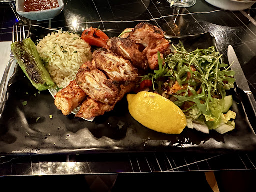 Read moreThe first occasion I went here was with a friend at the weekend when it was very busy, loud with music and a couple of birthday celebrations. There were a lot of people just drinking cocktails at the back of the restaurant, too, and coming and going from the bar. We shared various cold and hot mezze dishes on this occasion, which were generous and very nice. The second occasion I went to the restaurant, it was a weekday evening and a lot quieter which was good. We decided to share a starter and this time have a main course instead. The patlican soslu (Aubergine and peppers) was tasty but quite small compared to the initial time I tried it. Bread and dips are served which were good and the bread is very moreish. We both ordered the Monkfish main course but were surprised to see that it wasn't a fillet as expected but chopped into only 6 small cubes and served with chips and salad. The butter sauce I thought would be melted over the fish, but it was served in a small dish which I thought was another dip and was quite shocked when I took a big scoop from it and ate it. The monkfish was overcooked and rubbery, making it very chewy. For £24.90 the dish is overpriced for the small amount of fish that is given. The wine by the bottle prices are slightly overpriced, too, if you choose a semi decent one. The decor is a bit jarring with fake plants but the velvet seating is nice. I noticed a few cleaning products still on display around the restaurant at the back. The staff are polite enough but the service delivered didn't warrant a high reason to comment any further. I would advise if you go here to go for lunch or a weekday evening for mezze and to avoid the loud and manic Friday/Saturday night slot unless you...