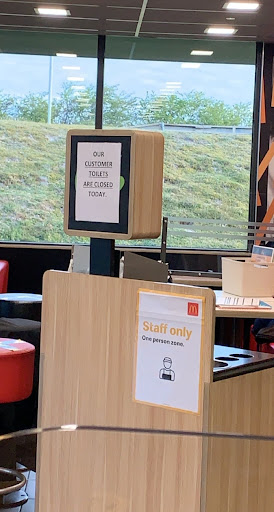 Read moreWe were travelling home from London with the three kids all under 5, McDonald’s seemed like a fast and convenient place to get dinner. The restaurant was quiet, about 30% full. We arrived and used the self serving machine to order the food. It took 15min for our order to be brought to the table, very frustrating with three tired kids. But the staff member took about 2min looking for us in the quiet restaurant, I had to go up and intercept him as he headed back to the counter with my food.