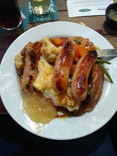 The pub offers an array of handmade sausages as part of their menu. Myself & the husband ordered the sausages in yorkshire pudding (his choice of sausages were Cumberland & mine pork & honey). Both were very tasty & packed with meat (sorry to fellow vegetarians/vegans!) & very much savoured. & The dish in itself was plentiful, although a little short on vegetables other than mashed potato, although I like plenty of other vegetables!