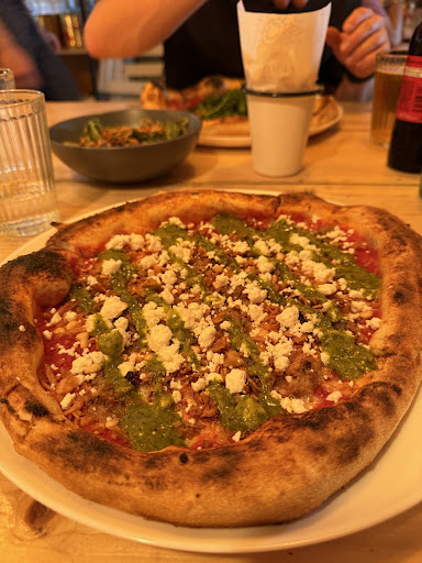 Absolutely amazing! What an incredible addition to the area, I legitimately think it's the best pizza I have ever had. We loved this place so much that we visited twice in 3 days and plan on returning again before our trip to Wells-Next-The-Sea comes to an end in a few days. The staff are so friendly, so accommodating and interactive. The food is INCREDIBLE. A small menu that does what it does best but allows for any customisation. It's so refreshing to have something new and exciting come to Wells, we've been visiting for many years and do so several time a year and Flour is the most exciting eatery to come to the town in a long, long time. The first night my wife and I ordered the Hot Chick (with added pepperoni) and a Margherita (with added olives) alongside a the harissa dip and pistachio pesto dip plus a couple of beers and wines. It was so so good that we couldn't stop talking about what we'd try on our next visit. We couldn't finish it so staff boxed it up for us. On our second visit we tried the Fire Starter (with added pepperoni) and another Margherita (with added olives and rocket) this time trying the tomato dip - EVEN BETTER! The Fire Starter was our absolute favourite and we agreed it's the best pizza we'd both ever had.