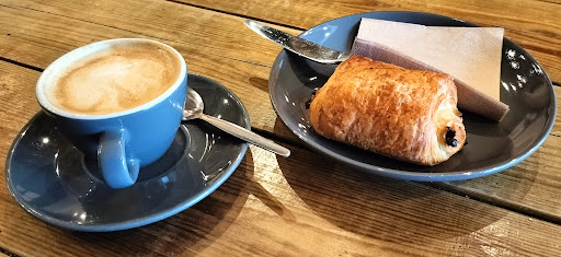 The coffee wasn't bad but because we sat outside on their seats we were given a disposable cup. There were cakes left out on the counter, exposed to the elements. There was a giant bluebottle fly buzzing around inside the glass cabinet where the cakes were, actually walking all over the cakes. The floor was worn and dirty, we chose to go outside only because there were no seats left inside which I'm guessing is why we were given disposable cups.