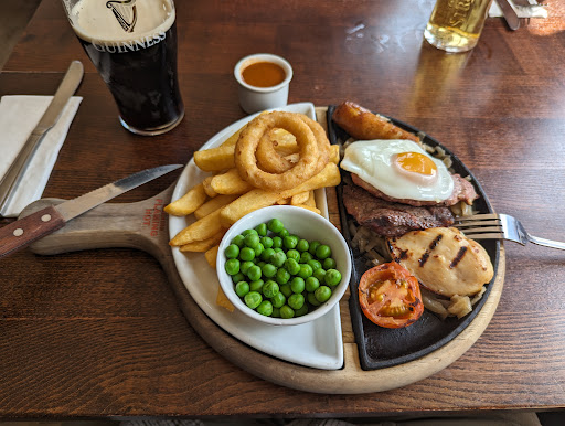 The food on the other hand would be a zero. The food was extremely disappointing, I had the moxed grill and the chicken was slimey, the steak just a lump of gristle, and the sausage was like one of the cheap sausages you get in Iceland. I don't know what the sausage tasted like because I was not brave enough to eat it. The feried egg looked like it had been thrown on the plate, possibly from the other side of the kitchen. Finally, under the meat was a slimey layer of fried onion which was really off-putting. I've seen this chopped friend onion under meat in a few restaurants now and I just don't get it. Maybe that's just me.