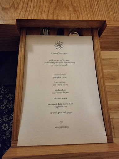 A lovely muted room palette, dressed with simple but beautiful wooden tables (with personal cutlery drawers - a nice touch that was new and also took away some of the fussiness that can come with some restaurants aspiring to great things). Very comfortable chairs, which is important when theyâre supporting you for the next 3 hours or soâŠ