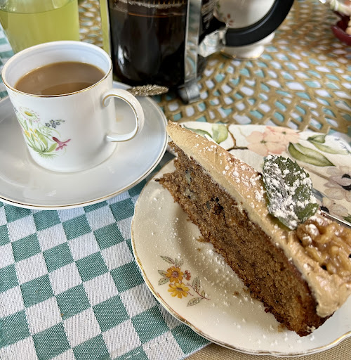 Came here after walking round Walsingham Abbey with our little dog and it was such a pleasant surprise!! The cafe is quaint and unique. We were lead upstairs to some tables and chairs and there was a sofa too, and bookshelves along the walls of all different genres. The atmosphere was so homely and welcoming, and everyone was really friendly and cheerful. We loved the china teapots and saucers that our delicious English breakfast tea came with!! My mum had a crumble with homemade custard and said it was amazing - I tried the custard and it had cinnamon and nutmeg in... Absolutely incredible flavour!! I had gluten free teacake and butter and it was such a wonderful surprise to have this option. It tasted lovely. There were also gluten free crumpets on offer and a whole range of different homemade soups. The food was quickly served after ordering, and they also brought some dog treats for our dog which was so sweet! Thank you to the ladies who were cooking and serving the food - they were all incredibly friendly and smiley, and really made our day. Will 100% be back again to try some more of their homemade food. Can't recommend...