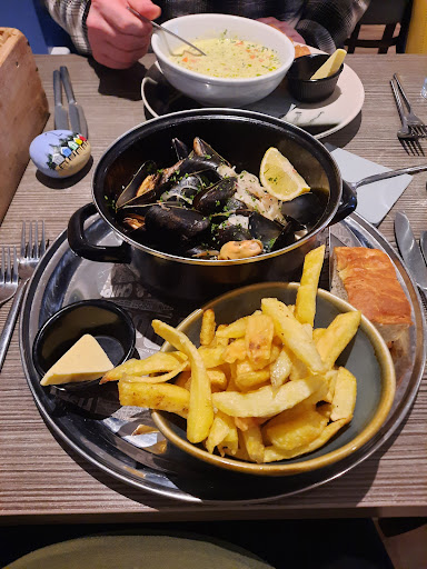 🍽️ Main Courses: We ordered a variety of dishes — from the classic fish & chips to a beautifully cooked fillet of fish with sauce and vegetables. Everything was perfectly prepared: the fish was incredibly fresh, crispy on the outside and juicy on the inside. The sides were tasty and well presented. We especially loved the fun touch of serving the chips in a bright bucket with a little shovel — such a charming detail!
