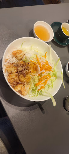 Cool decor, and the food was delicious. I've not been too Vietnam, not eaten it really before, I found it not very soft which was quite nice, although some of it was spicy and was noted to be so, I did think a bit of chilli would really hit the spot in some of the dishes. I had beef salad to start and it was really good. Really crunchy pickles and very tender beef, very much recommend. Spring rolls were tasty only got three compared to a whole plate of beef for starter. Massive main dishes, we had noodles and salad basically with sauces. You won't leave hungry, well I didn't. This is where I thought a couple of chopped chillies would have been nice, but on reflection it was good to have it plain to balance the prawns, which were very tasty but not much sauce. All very minor points really would deffo go again to try the more spicy dishes ๐ Vegetarian and vegan options were plentiful which was nice to see. Being rice noodles I suppose is also good for gluten free people.