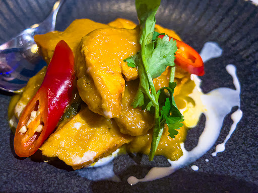 Read moreLovely staff with great service. Reassuringly clearly marked allergies on menu for gluten-free. We were excited because itâs not your usual run of the mill menu. Complimentary mango lussi shot and pani puri tasters. Not expensive and good portions. Clean bathrooms and imaginative dining room decoration. Onion bhajis were beautifully cooked and presented. Butter chicken was the most flavourful and full of chicken. Coconut chilli chicken was very coconut-y but little spice and three chilli heat was just from fresh chilli garnish. Garlic naan was fluffy & tasty and pilau rice nicely cooked. Trouble is, bhaji had no spices nor real flavour or seasoning. Both curries were overly sweet, saag aloo was really just potato and no spice nor sufficient seasoning. I really want to say how nice overall our experience deserved five stars but we prefer far bolder, more...