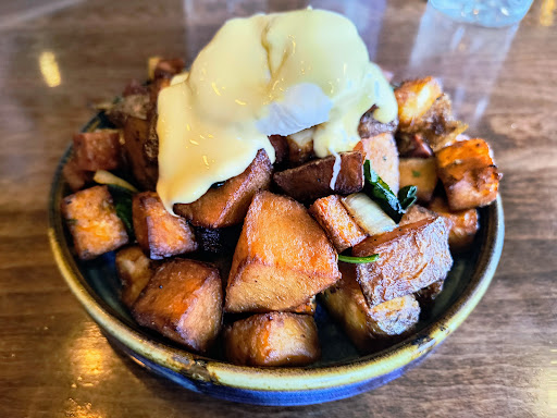 Lovely looking place to sit and watch the world go by. Just a shame the food and service let it down so much. We arrived for lunch on a Sunday (22/12/19) and had to order a breakfast as the lunch menu was not being served till 1315 with no explanation as to why. This was not a problem but not what you expect after 12. We ordered drinks 2 orange juice and a cappuccino. The juice was served warm and no option of having any ice. About 5 minutes later a second server brought the cappuccino and a 2nd lot of Orange juice with ice. The server had not realized we had already got our orange juice and I witnessed them put the lids back on and place them back in the fridge even though the lids had a popper for freshness. The only thing about the breakfast that was nice were the eggs and sausages. Bacon was far too salty and boiled, black pudding dry, beans hard and overcooked, hash browns deep fried and oily the toast was served half way though and was hard dry and burnt. This was compounded by the staff being distracted with conversations with customers that were friends. Having to ask more than once for Items, asked for ketchup and when we had to ask again was told that the server had told someone else to bring it over. I used to be a silver service waiter and when a customer asks for something you get it not pass the buck. Also don't wear anything nice I am all for dog friendly but allowing dogs to sit on the furniture when people pay for nice clothes is not on. The last thing anyone wants is to be covered in dog hair when going out for a drink or meal. Witnessed servers petting dogs then going behind the bar and serving drinks/meals without washing hands Again I will say that you have a lovely establishment and will visit again for drinks but...