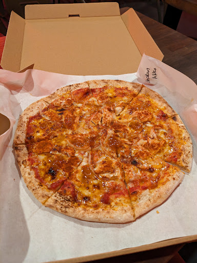 Got this through Deliveroo fairly late on a Saturday night--maybe that's where we went wrong? They arrived in okay time, but the quality was pretty bad for the price. At least they weren't freezer-crust pizza? But the crust wasn't much better than the kind you get from those fast food places that use pre-prepared crust--weird and flat and cracker-like, while at the same time a bit under cooked. We were all really hungry so everyone ate theirs. But they weren't very good. The prices were similar to the really good places in town (like Flint), but the quality is just nowhere near. Toppings, crust, cheese--it was all just a bit meh, but pretty expensive for it. I made the mistake of getting the vegan cheese (there wasn't an option to go cheeseless), and the vegan cheese stuck to my teeth in a way that I...