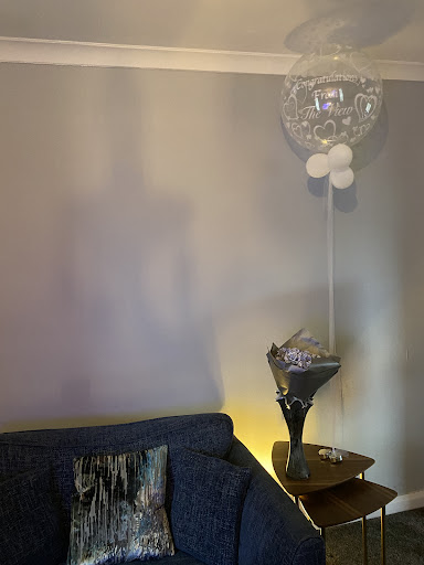 Anyway, not only did Jill and Dawn send us a beautiful flower arrangement with the lyrics to our personal song on the day, a beautiful big balloon that was stunning and they got us some beautiful chocolates too, so on our wedding night in isolation we put all of these items in our front room to make it as weddingy as we could in our front room. ❤️
