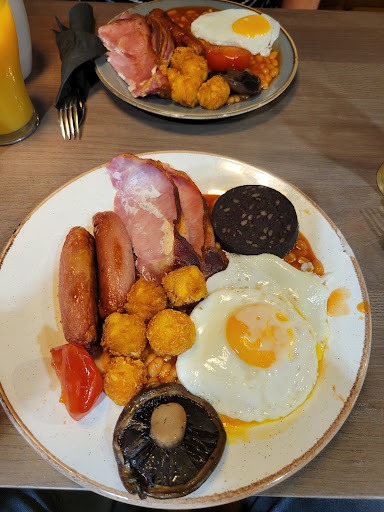 Read moreCatching an Early morning flight. Service at point of order was professional, friendly and quick... food followed in a matter of minutes , Ordered 1 full monty Breakfast a Midlands Breakfast and 2 breakfast Baps. Baps were ok apart from hard eggs in both but were reasonable value for money, the full breakfasts alas were a different story, sausages in both were chewy and looked and tasted very dry, the bacon was very similar, fried eggs on both were dry and hard. Whilst they both came within minutes of ordering, which from one perspective would be a real positive this was at the detriment to the quality of the food being cooked way to far in advance & held in a hot hold unit or under hot lamps. I am a realistic sort of person and understand the issues of speed of service in an airport, however this didn't reflect the price point and can be found in better quality & cheaper at other similar establishments in airports up and down the country...
