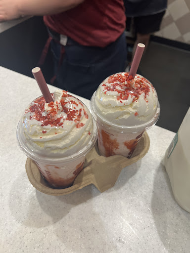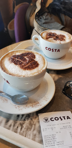 Small coffee place in town centre in Coalville. Has a variety of tea, coffee and other sweet drinks like hazelnut more special drinks with small snacks and desserts to eat like a small chunk of rocky road and a bit of cake. You can take the drinks outside and there are seats outside to eat there, self service and the usual drink to me is a 'I just call it this' babychino, or basically a very small hot chocolate with choice of marshmallows. There is toilets and you have to ask staff for code. They are very friendly and I recommend to go for a simple small snack or drink. Very nice place in Belvior...