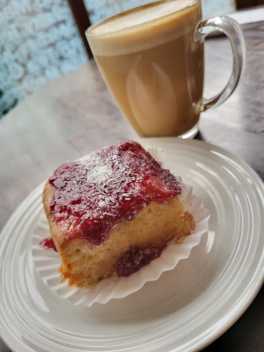 I love the colour scheme they have going inside and out, matching the logo and everything. There is seating downstairs and upstairs with some comfy intimate chairs if you are wanting a chinwag with the other half or friend these are ideal. A sanitiser station is available at the front and you literally get the red carpet treatment going up to the counter. Another added feature is a waiting area for ones waiting on a takeaway.Great idea 👏 A very clean establishment and good atmosphere. Fab selection of hot & cold drinks, Morelli Ice-cream , tray bakes, sandwiches, wraps, sausage rolls, scones and a new gluten free selection. One to one service as you pay at the till and they bring it down to you. Really great to see them supporting local artist Michelle Montgomery Photography with a selection of her work on the walls. 🏷️£1.95 for a pot of tea that I got two cups out of. I would give them a ❤❤❤❤ out of 5 because there's an unsightly black bin in the middle as soon as you come in to dispose of napkins (I know this is so the staff don't need to touch but could be more discreet or be placed elsewhere) the staff unfortunately plugged in the hoover beside my table, opened the door and hoovered the rugs at the front. I...