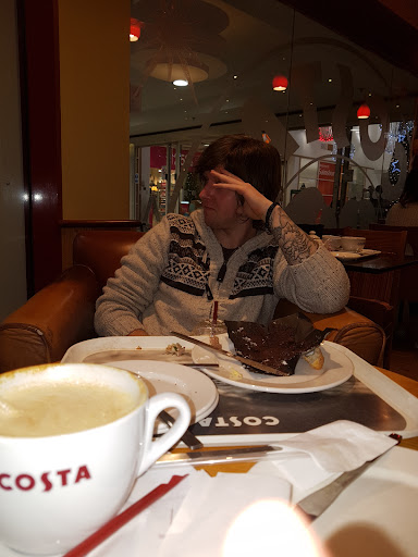 One of my worst Costa experiences so far. I asked for a green tea and in the background I could see one of the members of staff having to change the teapot because of it leaking. So I got my new pot of tea to the table, then I realised this pot was leaking to. So i took it back to the counter and asked for a replacement, it was replaced but with no apology. They also were going to give me my tray back wich I brought to the counter that was full of water. I was giving a latte style glass cup for my green tea that's fine, but not when it was absolutely stinking it's not. Rather than go back to the counter and ask for a replacement cup I used the steam from my teapot to clean my cup. I also purchased a overpriced caramel square and the reason for being overpriced it was not very nice. My table was also dirty and overall impressions of the place or not very good. I would look over the matter of this if it was busy or in the late afternoon but this was 5-10 mins after opening on a Sunday. Would not...