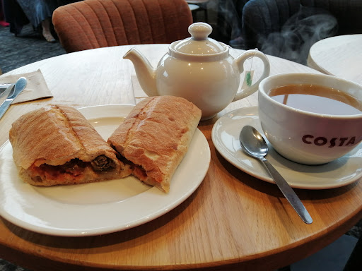 Read moreI have been in many Costa coffee shops but this is 100% the worst Costa coffee shop I've ever visited. The atmosphere at the till was strained and awkward when the trainee barista asked other staff members to make our drinks. When we received our order the latte was weak and watery with little froth and the peach iced tea was just coloured water, absolutely no flavour. The tables were full of dirty dishes and a member of staff went around lifting them without even wiping the crumbs and dirt off the tables. The floors were messy with crumbs and dirty napkins. Definitely not what you expect at Costa. I will...