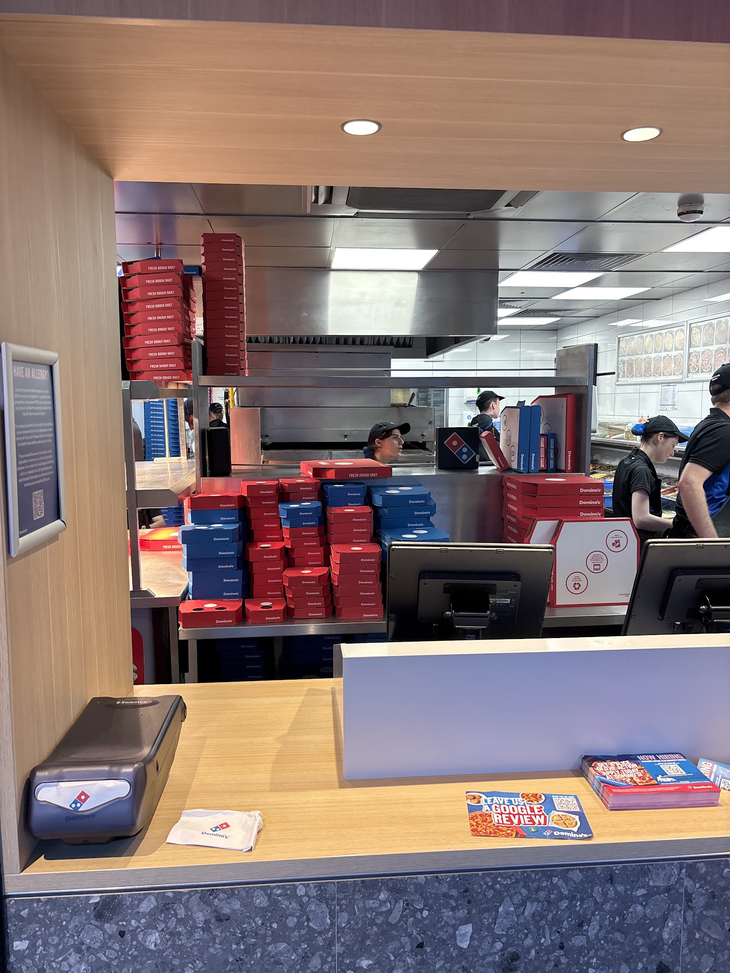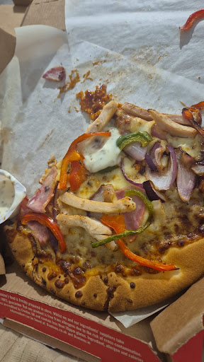 Great to be able to park right outside as delivery is £2.50. During covid the sign said only one person allowed inside the customer area - which is small to be fair. People either can’t read or don’t care as there were 7 at one stage. Good when they have offers on as otherwise the pizzas are expensive. Hot and spicy pizza must have had a fight with the jalapeños jar as there were a quare few on ours. Jalapeño nachos were super as always. They were busy but I didn’t expect to be standing outside (because there was no room inside!) for 25 minutes after our order was ready - as per their collection screen which you could see from outside. They were giving customers a free large garlic and herb dip to thank them for waiting. The food wasn’t very warm when we got it which is odd given that we were waiting forever on it being ready. I’d also have preferred a free side given the length of wait standing outside in the cold - the wait turning into a hands off training session on prepping boxes for orders - you had to be there - for 25 minutes watching operations! Staff are always very friendly and the...