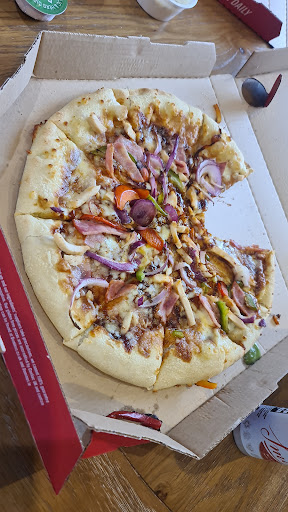 Read moreBig fan of pizza. Not usually a Domino's fan. However, have to say Saturday night's grub was good! We received a leaflet through our door to say it was under new ownership and a voucher code for £5 off our next collection . They also had an offer of any size pizza for £6.99. Dinner = sorted! Booked online for 7pm collection. Was about 7.15pm by the time our food was ready as it was SUPER busy! Steady stream of customers in and out. Staff were friendly. Ordered the vegetarian pizza which was really tasty. Much better than I remember Domino's to be. Also got wedges, garlic pizza and a coke (£6 deal) Everything was really tasty but had to reheat our stuff when we got home (literally a 5 min drive) Yes I was happy with my food, but would only be inclined to go if...