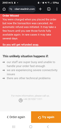 Read moreAbsolitely disgusted at them. Poor girl on the phone was told by the boss to recharge our order to the original account as the app canceled it for some reason (proof provided we didnt cancel it) They replaced the order and expected us to pay again, the boss then told them over the phone 'bring the order back' and proceeded to say they didnt get the money despite our money being taken from the account. Absolutely disgusted by that boss and I will NEVER be ordering from...