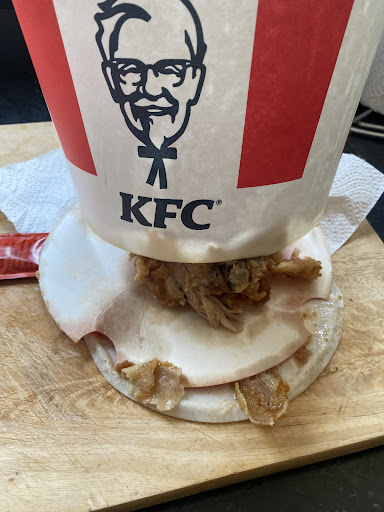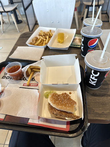 Read moreI knew standards, portion sizes and service has slipped drastically at local KFC branches. But I took a chance as every now and then you get a decent meal. Went to counter where a boy, possibly from Sudan had little grasp of English yet was trying to take orders. I asked for the Colonel 3 piece meal. He asked what side I wanted. Now I know it only comes with chips but I was assured I could have another to which I ordered sweet corn on cob. He then asked for £7.99 but the menu clearly said £7.49. I just could not get through to him and pointed it out on screen. A local girl worker came along and sorted it out but gave no explanation other than he is new. Then they lost the meal. And had to redo it. Then they had no breasts so I settled for two thighs and a fillet. I Some ten minutes later I got the meal with a large cherry Pepsi. The Pepsi overflowed and wet all round it. I only ordered a regular. The three pieces of chicken would not amount to one piece size wise. For 50 pence extra I could have had a decent Chinese meal. What a rip off it has become. Extortionate really. The chicken was nice and crispy and not greasy. But everything else...