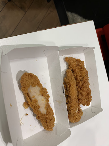 Possibly the 2nd worst fast food restaurant after McDonald's in Holyhead. Pulled up to a busy drive through at 9:50p.m. After an age of little movement of traffic we tried to order from a clearly disinterested fella. No milkshakes and no apple pies (offered raspberry pie instead) as the machines were broken. Ordered our food and paid for it. Told to wait at next window. Food practically thrown at us by a very rude girl at 10:17 We drove over to a parking spot to "enjoy" our food in the car as it was lashing rain outside. When we opened the food,