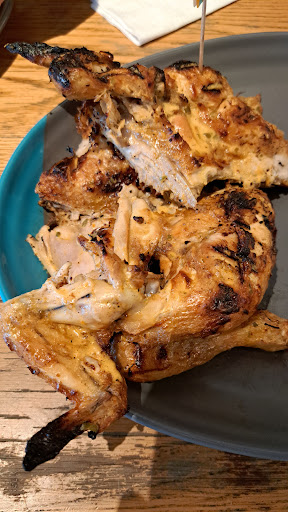 The other thing is that Nando's is weird in the way it works. Waiting staff seat you, but they don't take your order. You have to use their app or order at the counter and they bring the food to you. But they don't provide cutlery, you have to go grab it and any sauces you might need yourself.