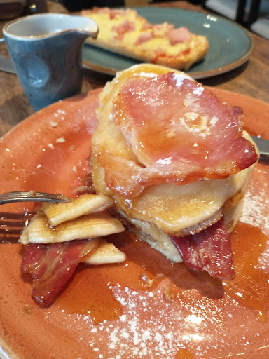Ordered strawb smoothie & bacon, cheese, tomato and red onion toastie. Said numerous times that I was taking out because I was in a rush (out with bro, sis in law & baby). Firstly I was served by a new starter who didn't know how to use the till & was given no help or instruction despite there being three other staff members, then he told me to go sit & they would bring it to me even tho it was takeout ๐ Then came back to me on three occasions to ask what salad I wanted with it (wasn't aware it came with salad), if I wanted butter or mayo and if I wanted toasted, then I was asked if I had ordered the smoothie which they had served in a glass as if was sit in, then it was brought to me in a takeaway cup with smoothie spilled all down the side and it was the WORST smoothie. The toastie was delicious and the salad was nice but I paid almost a tenner for a terrible smoothie and a slow sandwich. The cafe was by no means busy so to leave a new starter to fend for himself...