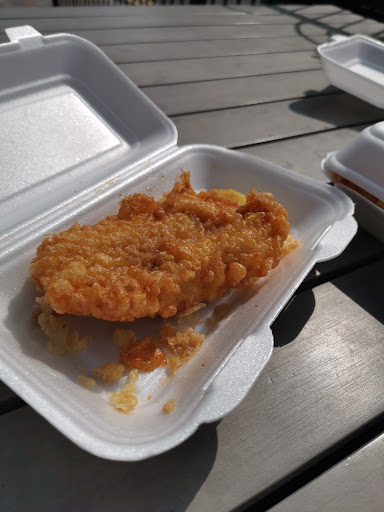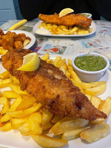 Been to this place twice and was disappointed both times. Can't understand the high reviews based on my experience. Not sure if they are inconsistent but I did see a few reviews that aligned with my experience. Chips overcooked and quite greasy. Think the problem is they are fried twice but the first fry has them basically done rather than prepped for the final fry. So you're basically getting refried chips. Not sure what oil they're using but doesn't seem too fresh although it could just be the cooking method or potato they are using. Also potatoes taste of very little and loads of little scraggly chips. Fish quality seemed good but very little flavour, batter was bland and not very crispy (and quite small). Peas also didn't taste the best, again no seasoning. Just seemed to lack any care or attention to detail. These guys need to taste their food. I'd recommend they take a trip into Belfast to Cafe Fish or John Longs to see how fish and chips should be done. This was a wee treat for my wife and I and I was annoyed it was wasted on this to be honest. Maybe their other stuff is better but anything with their bad chips ain't gonna turn out too good. I'm sure they can do better but don't think I'll give them another try...