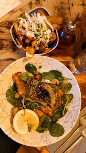 Ā Ā Ā Read moreWow! We called on a Sunday afternoon, I thought this was a cafe, but wow, the food was amazing!! This renovated lifeboat hut is beautiful with views to die for! There is an outside terrace overlooking the sea and Skerries islands. It is sheltered, but would definitely benefit from heaters. I can imagine sitting here even in winter with a baileys coffee. There is a terrace upstairs, which will open next year, again the views are stunning. It is a licensed restaurant, with bars upstairs and downstairs. It has been decorated sympathetically with old photos and pictures of the lifeboat and original station. Downstairs has free standing tables and upstairs a mixture of free standing and stable like stalls, natural wood, a pot belly stove and again the stunning views! Service was slow, but all staff were lively. The menu was limited, but I could have ate anything from it. Our party had Kilkeel cod - see photo, burger and cod & chip. We ate every bite! Food AMAZING. Kilkeel cod was served on a bed of spinach and potatoe skins, dresses beautifully. The cod and chips came with fresh minted peas. We cannot fault this place. We will definitely return. When upstairs opens fully, they will require a further toilet! As only...