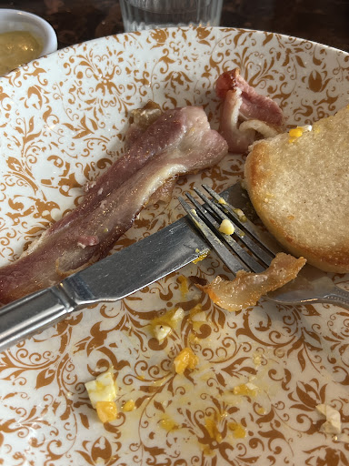 The bacon was like an experiment in dehydrated pork. That is to say it was cold, hard, salty, and had attained a level of chewiness that is normally the dalliance of those who make jerky..