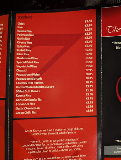 The food is excellent, I highly recommend the chicken tikka madras, it's the flavour of a tikka but with the heat of a madras. My daughter loves the standard tikka as well. It's not a cheap takeaway at around 11.20 for a basic main course with rice etc extra. But the curry is well worth the cost as a rare treat for someone on a budget. And quite a bit extra as well, I will try and add some takeaway menu pics. Great food with generous portions. I would have given it 5 stars but the look of horror on the face of the chap taking my order every time I decline rice, nan bread or onion bhajis is almost comical, like I'd insulted the family lineage! Yes, I have to be thrifty so I pop into Sainsbury's and get their taste the difference extras at well less than half the price and it's just as good. Having said that, the curries are gorgeous and I wouldn't go anywhere else in Antrim or Ballymena for...