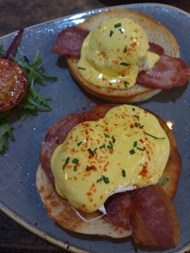 Having eaten here a fee times before we felt we'd get a nice brunch before a short walk to Pickie Park and back, unfortunately standards seem to have slipped since we were last here. The youngsters all had toasted bagels which were toasted so that was fine. My good lady wife ordered a pancake stack with bacon and maple syrup, disappointing was what we received. A better description would be a pancake pyramid, three pancakes one each smaller than the previous and the maple syrup (although plenty of syrup) was not the same quality and bacon was overdone. I ordered eggs benedict and although the eggs were nicely poached there was only a table spoon of sauce and again the bacon was over done. I did however ask for more sauce which was brought up. All in all I'm disappointed in what we received, standards have definitely dropped over the...