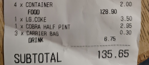 Read moreService was very slow. 20 people in for a birthday dinner. Waiting staff couldn't cope. Took forever to get drinks brought to the table. We ended up going to the bar ourselves a few times. Niece had an ice cold glass of soda water and lime dropped down her back. It also went over her designer handbag and my sons £125 pair of trainers. Brought her a dirty tea towel to clean up with then didn't come back to retrieve it, so it sat on the table for the best part of the night. Female waitress had a real attitude problem. We tried a few times to make light Conversation with her only to be blanked by her. Only time she smiled was when my brother in law gave her a tip...