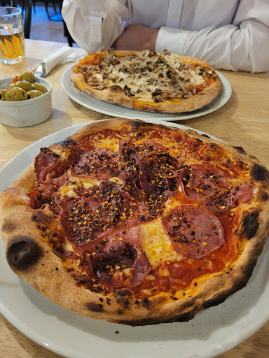 What can I say you walk in and the first thing that hits you is the smell of the wood oven where all the pizzas are cooked. You then get a warm welcome by the waitress who sits you down and offers advice on what to eat if you are unsure. We had the dough balls as recommended and they were a delight, we had a pizza and a calzone thinking they would be a normal size one that is smaller than the plate, they come out on big plates an the pizza fills the plate the calzone is like a towel that's been wrapped up and makes a half moon on the plate accompanied by a small dressing. If you've been to Italy then you know what the pizzas taste like and if you haven't then this is what a traditional Italian pizza is like. They were fantastic, not much choice on desert but the gelato seemed fresh and to be made with actual ingredients and you can taste the flavours, we had 4 pistachio, strawberry, noccolata and vanilla. They do kids size pizzas but are more like individual adults so if your little ones don't eat much I would say get one between them. Great family run restaurants, they have another in Wroxham so if you fancy a proper pizza then I would...