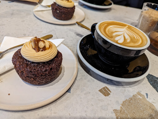 Read moreI have been to this coffee shop three times. Twice the drinks were cold. Last time I dropped my drink, my fault, and I went back to the the counter to buy another. The barrista said they would bring me one over, but it never came. My sister also found something small and hard in her non vegan cake, which was like a pebble. She tried to cut into it to see what it was, but it was so hard, it pinged away and was never seen again. My vegan cakes were nice, and I would pick one up if passing, but wouldn't stay for...