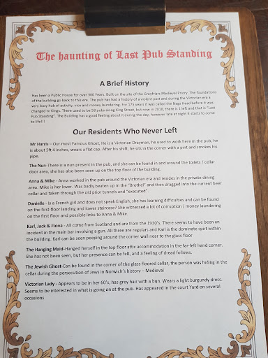 Read moreHad a great first experience in here. Met one of the owners who had a lot of information about the past of the pub and some of the ghosts that haunt the property to this day (pictures attached describe the different ghosts) i ordered a bowl of chips which cost £4.50 got a lot more than expected, my friend ordered the vegertarian burger and a drink for £10 which he was very impressed with both the quality of the food and the price, the menu looked very good all around and you can add lots of different items to your chips and burgers if you fancied. Next time im in ill get more pics of menues and decor. We had one slight issue but this was very quickly rectefied by one of the owners. The staff we spoke to were very friendly, would defernatly recomend this pub for food and virety of drinks, small and inderpendent which is fantastic. All in all a great hidden pub very close to the heart...