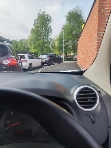 Sadly the workers vehicle will not fit through a drive thru.. The new click and serve app feature has been a godsend. On a date in question, this front line worker had to park diagonally acrross parking bay's. To ensure no obstruction of the overall parking facilities. Without realising they had overhung into a disabled parking bay.