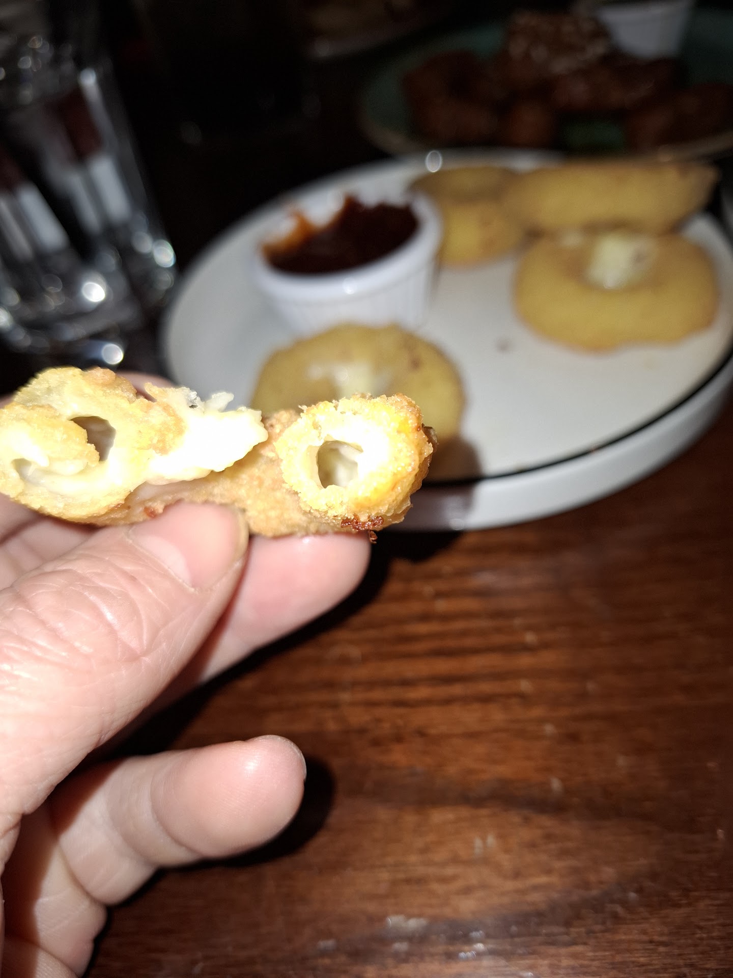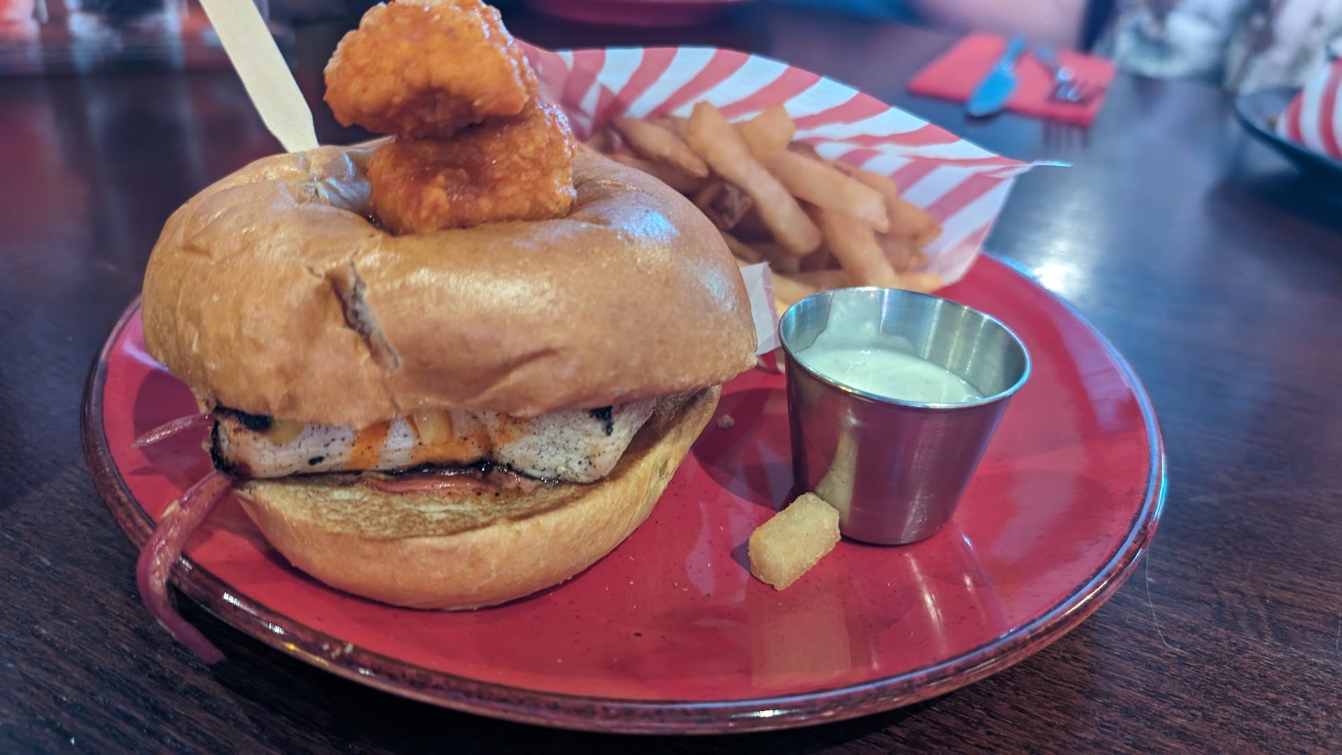 Read moreWent to TGI's for the first time in a long time today. Cold, windy December day so to get out of the cold we go to TGI Friday's upon entering its spacious and well presented, a bit dimly lit for the time of day but overall good presentation. Stood about waiting for a good few minutes whilst 2 members of staff had a chat near the kitchen area, when they had finished their general discussion we were finally acknowledged and shown to a table at the back of the restaurant given menus and a pack with crayons for the child we had with us. We were given enough time to sit down and familiarise ourselves with the menus etc when our server, Hayley, came over and introduced herself, Hayley was the best thing about the whole experience which sadly gets worse from here but before I point out the negatives and reason for the 1 star review i wanted to take the time to praise Hayley, who was excellent, sadly my review is based upon the whole experience and the 1 star is for Hayley alone. Whilst Hayley was taking our drinks order she explained which menu items were not available including, but not limited to, the Vegan burger and Garlic bread. Unfortunately the alternative Vegan options were very lacking and one of our party was Vegan so not many mains options available. We enquired about the mac and cheese which is listed as cajun and asked if there was anyway to get just regular mac and cheese, you know, like they always have in America and TGI's, styling themselves as an American food chain, are unable to do a mac and cheese. As a result of the lack of availability on the menu we opted for starter's. We had the loaded potato skins with cheese and bacon, the vegan chicken dippers and the pictured on the menu cheese doughnuts, we all commented on the cheese doughnuts as it was something a bit new and niche that none of us had seen elsewhere, and they must be good to be feature on the menu, when the food came the cheese doughnuts were laughable. One bite and all the cheese was gone leaving a soggy shell of deep fried batter. They were so disappointing. Potato skins were awful. Somehow the outsides were burnt but the potato in the middle not cooked properly and the sauce served with the vegan dippers was frankly unpalatable. 3 dishes, 3 disapointments. The child of the group had ice cream for dessert, in fairness this was the best quality item on the menu. This culinary experience cost £50+. It just did not feel like any sort of value for money. From walking in and feeling ignored to multiple menu items being unavailable and picturing food items that are then delivered poorly it led all of our party to conclude this was a 1 star...