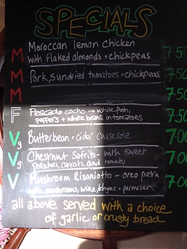 You can sit outside all year but it’s summer when outside is really busy. There are two bars both comfortable and spacious with ample table space. It gets busy with food in the early evening but food is served from early afternoon until 19.00hrs with a great varied menu and a specials board showing soups, mains and desserts.