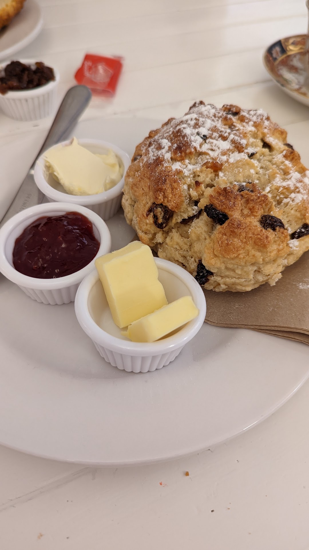 After around 10 mins our scones arrived and they were perfect. My wife went for a cheese scone which came with cream cheese and an onion chutney. I plumed for the fruit scone which came with clotted cream and jam. Both scones were £3.80 each. Well worth the money as they were delicious. Along with the latte and cappuccino it came to £13.20.