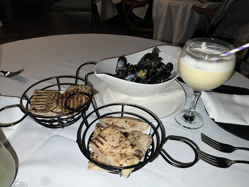 I would not recommend dining at this establishment, as it was one of the worst experiences I’ve had in a restaurant. Initially, we were greeted by the manager, AJ, who showed us to our table outside. Our server, a lovely waitress, promptly brought us the menus, and we ordered a bottle of wine. However, the manager unexpectedly intervened and took over pouring the wine, which struck me as unnecessary.