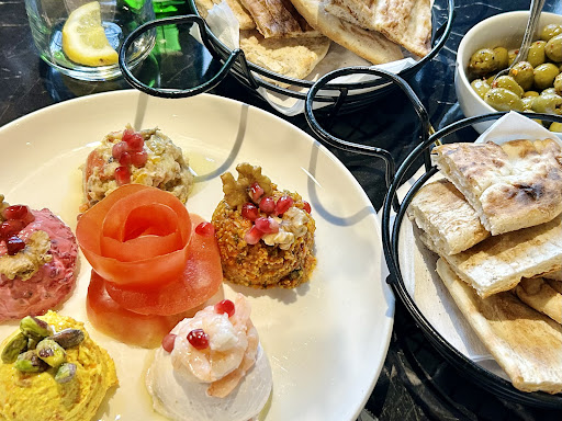 We ordered several starters along with the mixed grill kebab for two, requesting that all dishes be served together for sharing. The starters arrived quickly and were quite tasty, although the prawns appeared to be frozen rather than fresh. Unfortunately, the mixed grill did not arrive with the starters. After waiting for about 15 minutes with no sign of our main course and our plates still uncleared, I inquired if the kebab had been prepared, as we had other plans. The manager assured us it was already being cooked.