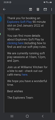 Read moreThe soft play is terrific, creative, super-clean and great fun. However in the cafe I've twice had the same experience with the same member of staff that is mentioned in other reviews. I was charged £1.20 for a small quantity if milk (for the baby, she knew that, I had his cup which really nice lady washed out for me). On being charged £1.20 I asked for it in a paper cup to at least get a decent amount of milk.Without communication, a ridiculous little beaker was found in the kitchen. I protested requesting a paper one. I was gruffly told "these paper cups are expensive"! I pointed out the £1.20 for a bit of milk for a baby was also expensive, whereupon grudgingly I was given half a paper cupful of milk. Absurd. So many of the staff are sunny warm and helpful. It must be tough to work alongside someone who is so frequently hostile...