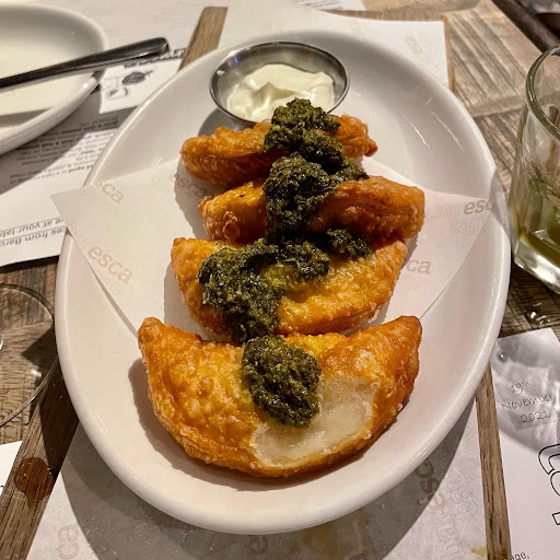 Read moreWe were seated under open stairs to bathroom. I felt like dust was dropping on the table. Very unhygienic placement. Bathrooms smelt of piss badly. This is not acceptable. I ordered a tropical drink of the day, so my friend did too. Drinks were spread unevenly. His was full, mine had a gap and if I taken all that crushed ice from my drink, theres only 125ml of my drink left. Drink was delicious. Sadly very little of it for the price I paid. We've ordered starters and few tapas. Flatbread and dips were great. Really tasty. Moving to tapas. Salmon, chicken screwers and quinoa salad were great. However fries with parmesan were just dry and hard, I was also very disappointed with crispy beef. I expected it to be crispy but not literally just hard crispy, oversalted pieces of something that somehow still tasted of beef. My friend ate it as she was hungry but she didn't like that too much either. Her patatas bravas were just dry deep fried potato cubes with a bit of mayo and salsa squirted on. Waitresses were great. Service was great. No doubt in that. Fries were taken off my bill. Thank goodness for that. Verdict: 🤮 bathroom 🤮 placement of our table 😒 dry hard chips 😤 wished my drink was actually full 👎pricey for what it is.