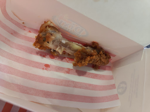 Got the fillet burger + 3 wings + chips + drink + side for ÂŁ6 deal. Good price and fast service. Burger was alright not enough mayo but the fillet was boring. No flavour in that breading at all very boring. Burger bun top piece was grilled for some reason on the top making it flattened. So it was a flat burger Wings. Most important part. Generously breaded but damn the meat was tough it was a challenge eating those wings. They should be tender and moist instead they were tough. The breading wasnt crispy it was hardened like tough and not tasty. Chips were disappointing they werent crispy just kind of old. In retrospect they were probably sitting out for awhile losing freshness. They werenât mcdonalds noncrispy where theyre still moist and flavoursome they were just not good. Coleslaw as a side Standard ok portion size and fresh Customer service 10/10 Iâm not coming back to Dixys im going to find better wings elsewhere. Price â Service and...