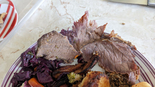 Firstly, I want to mention that this is for the collection of "too good to go" of the carvery. We turned up just before 20.45 on the Saturday evening. We went up to the carvery counter and waited......and waited....and waited. I wouldn't have minded, but plenty of staff walked past us and we were completely ignored. Eventually someone asked us if we were being served, but when we told him we were here to collect "Too good to Go", he seemed put out. Anyway my partner showed him the code, but had swiped it to collect, which apparently you're meant to wait until a member of staff sees it. We didn't know that and rather the guy explaining this, we were basically accused of trying to scam them out of the food, "as they have people doing it all the time, with screenshots". Not very nice being tarred with the same brush as everyone else. So we come to the food. This guy (obviously with some sort of chip in his shoulder), found a scraggy, dry piece of beef that had been at the end of the joint and had already been cut off and put to one side, picked it back up and carved it as thinly as possible and gave us three slices each (which was mostly gristle). We then had a small choice of the dried up vegetables and to add insult to injury, we had to argue with the guy for pots to put the gravy in as he said "they didn't give them out". Thankfully, there were two other people waiting with us and also said they did give them out. Begrudgingly he gave out the pots. Quick question...why would you have takeaway pots, if they weren't meant to be given out??? Needless to say, the meal wasn't very nice and irrespective of not paying as much as you normally would, it still has to be edible. Basically £4.59 for some dried up vegetables, as the beef was inedible. In the interest of fairness, we did have a "Too good to Go" from here a few weeks ago and the experience and food was fantastic. What a difference friendly and polite staff make and when the food is prepared properly and not left to dry up under the serving counter. Needless to say, we won't be going back, either as a collection or to dine in.